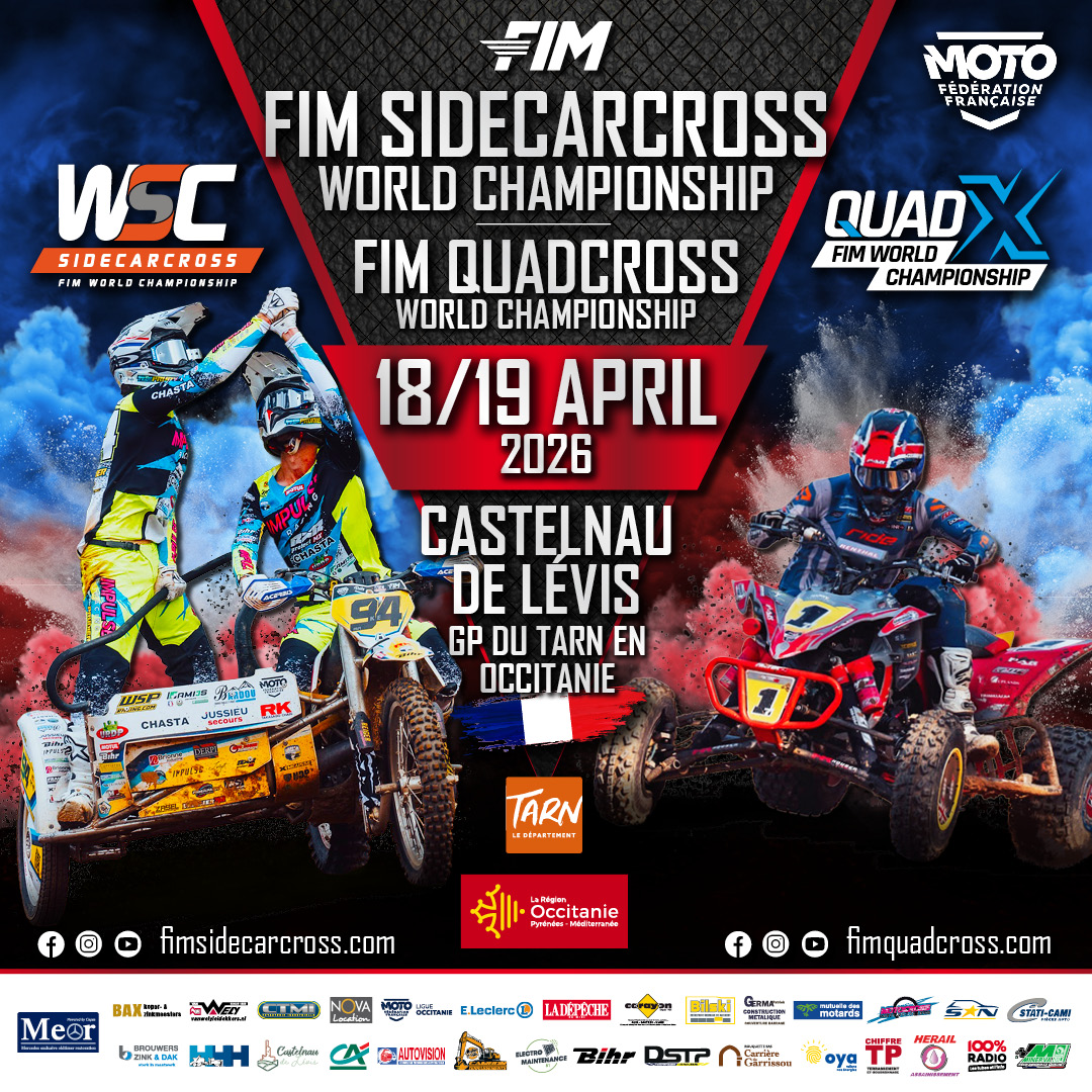 Le FIM Sidecarcross & Quadcross World Championship débarque à Castelnau-de-Lévis les 18 & 19 avril 2026… et la prévente se termine bientôt ⏳![]()